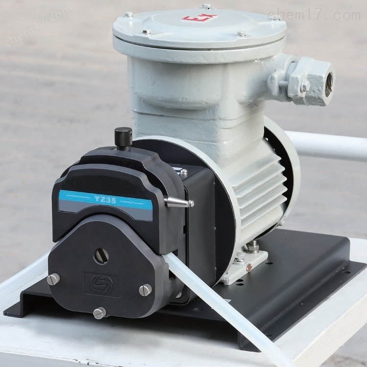 FG601S-A3变频防爆电机型蠕动泵采用防爆型电机,广泛应用于制药、化工、生物等领域具有防爆要求的车间,以实现大流量溶液的准确传输。通过变频器控制蠕动泵的启停、调速和正反转。可以搭配YZ35泵头,还可以与73#82#硅胶软管配套使用,当溶液具有强腐蚀性时,还可以选配氟橡胶、内衬特氟隆软管。当搭配YZ35泵头和82#软管时,流量是13L/min。