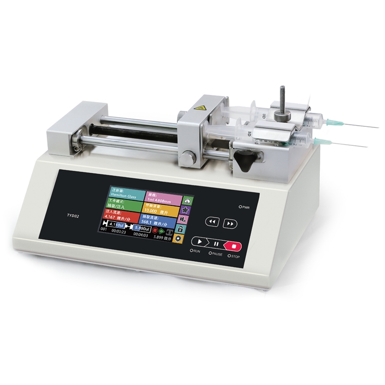TYD02-02实验室注射泵采用一体化台式设计,可装卡2支塑料注射器或玻璃进样针,注射器容量范围宽至10μL~140mL,流量范围