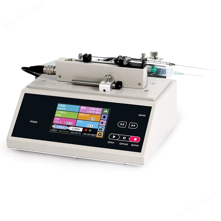 TFD03-01型分体注射泵由控制器和执行单元两部分组成,液量范围:0.005nL/min~152.456μL/min,具有注射、抽取、注射后抽取、