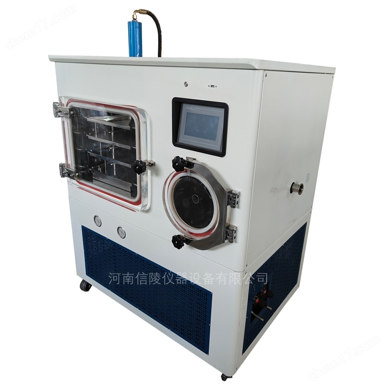 采用液晶触摸屏操作面板,可触屏操作制冷机的开关机、真空泵的开关机、编辑冻干工艺配方,显示冻干曲线、样品温度、冷阱温度、真空度、运行时间等数据;