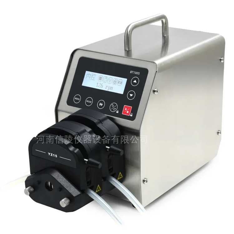 BT300S调速型智能蠕动泵,流量范围是0.005~1750mL/min,转速范围是0.1~350rpm,具有启停、正反转、全速、调速、状态记忆等基本功能;可设定运行时间、间歇时间、循环次数等参数实现定时定量、液体分装的功能。具有转速缓停、回吸功能,可有效防止停机时液体滴落;采用进口内核处理器,高品质步进电机驱动,转速控制精度高达±0.5%;通过APP软件,可对泵进行远程控制,并对运行状态实时监测;RS485通讯,兼容Modbus协议,可通过多种信号模式与计算机、单片机、PLC、变频器、人机界面等上位机连接,实现系统化集中控制。通过控制滚轮转速或步进电机可精确控制流速,重复精度和稳定性精度都很高,能实现小体积流体的精准分配和计量,适用于需要精密计量的场合。应用于液体搅拌、输送和计量,可输送各种化工介质,如酸碱液、溶剂、高温液体和化工废液等。能够精确控制油漆、涂料等的输送量,用于生产过程中的配料和灌装。